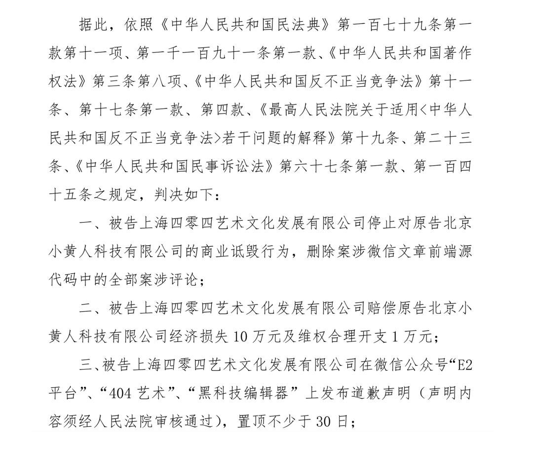 另外上海四零四艺术文化发展有限公司(E2编辑器主体)因在交付客户的SVG排版代码中实施商业诋毁,一审被判赔偿我司经济损失10万元及维权合理开支1万元和公开道歉。(详情)