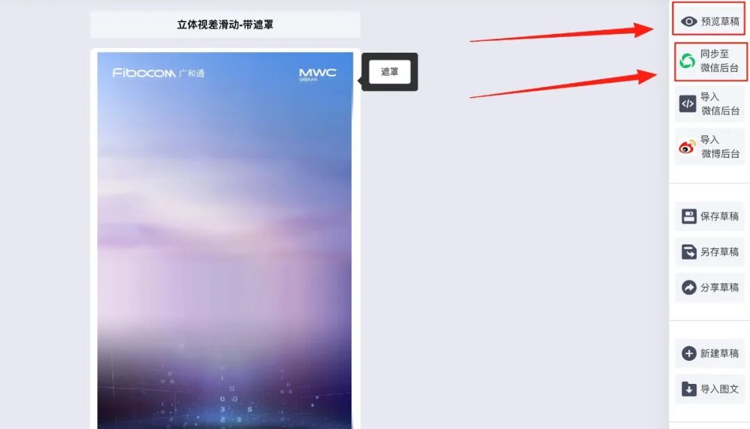 点击页面最右侧「预览草稿」可随时预览效果,尽量使用手机扫码预览。