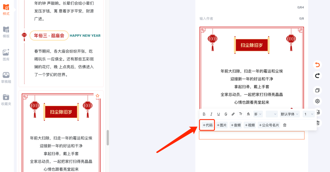 因为 SVG 交互排版的特殊性,我们通常不能直接复制粘贴交互排版的内容,而是通过复制其代码的方式导入到公众号后台。
