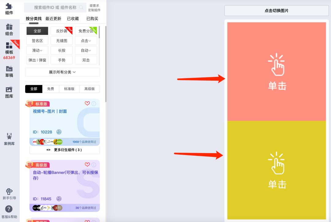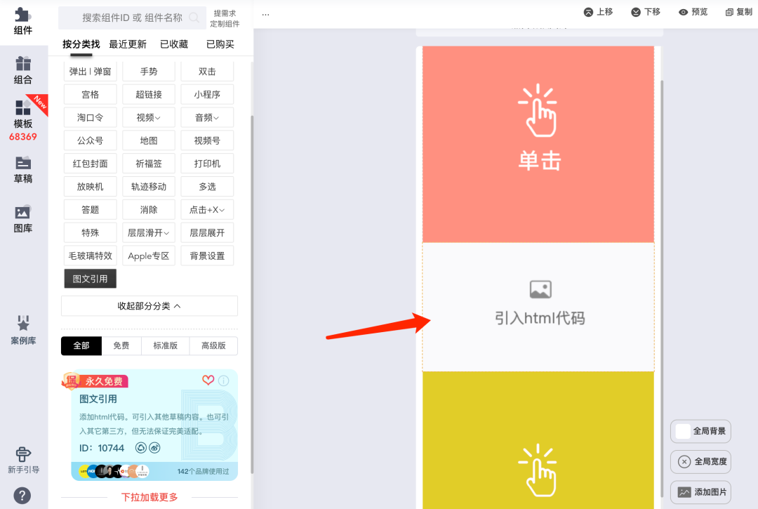 接着回到 iPaiban Pro 黑科技编辑器,在两个切换效果之间插入一个「图文引用」组件。