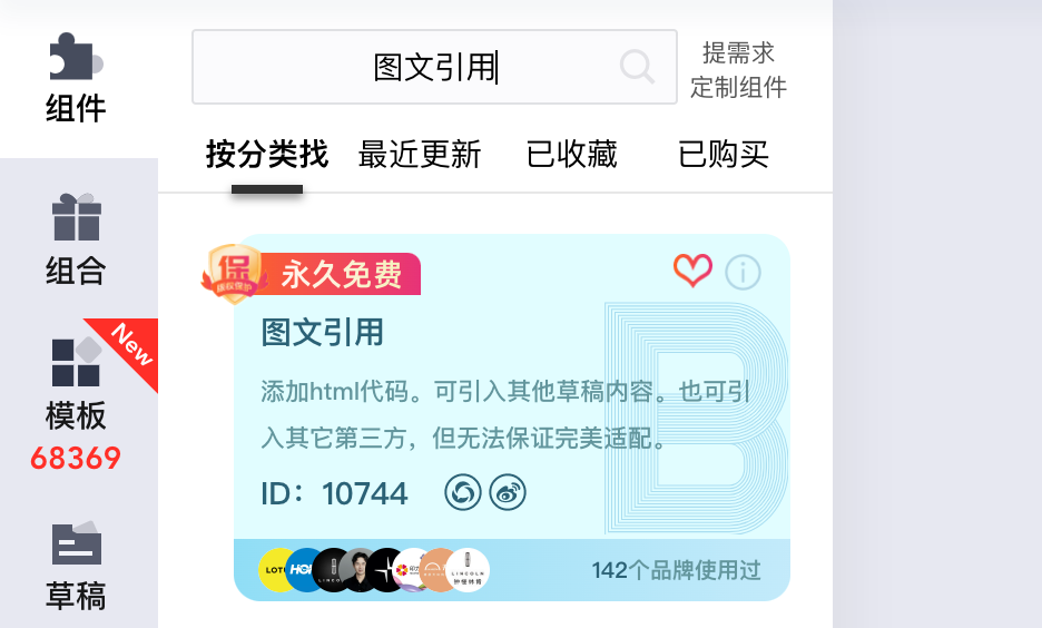 「图文引用」组件在 iPaiban Pro 黑科技编辑器(SVG.iPaiban.com)中是一个特殊的组件,它可用来引入编辑器的其他草稿内容或第三方的排版内容。
