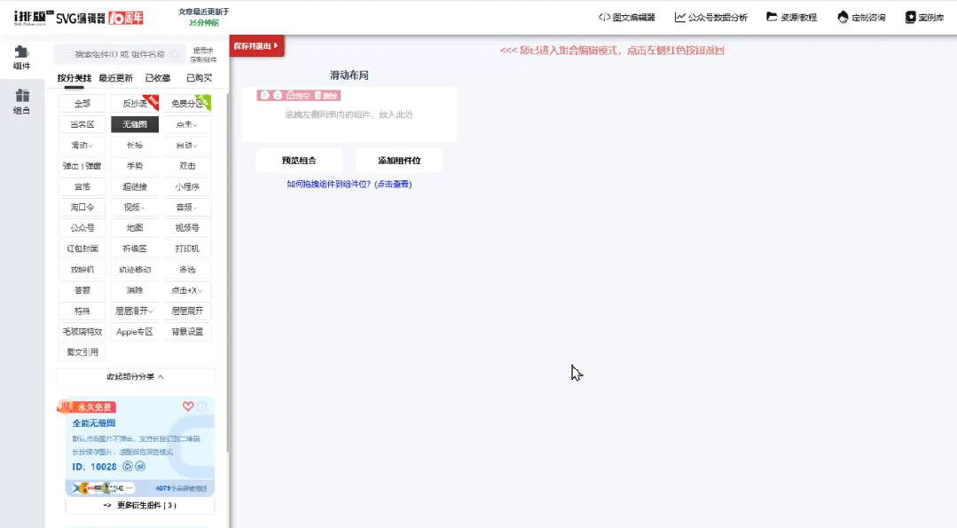 需要什么效果就在左侧「组件」分类中找到相应的组件拖动到组件位中,然后上传需要的素材即可。