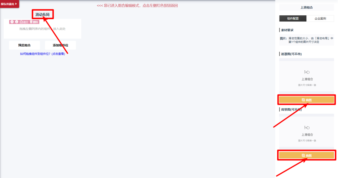 注意,上滑效果滑动范围的大小,由「滑动内容」中第1个组件的图片尺寸决定。所以我们需注意第1个组件的切图大小,另外步骤3中上传的背景图,尺寸最好与第1个组件的图片尺寸保持一致。