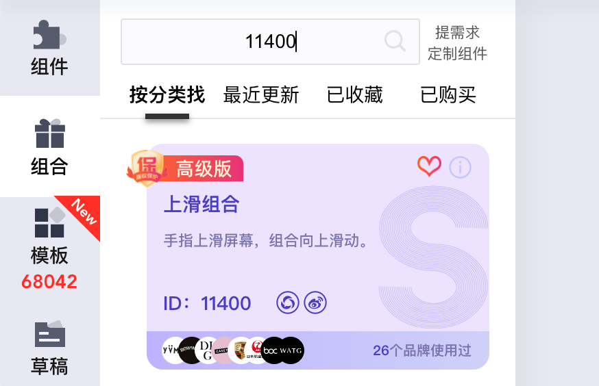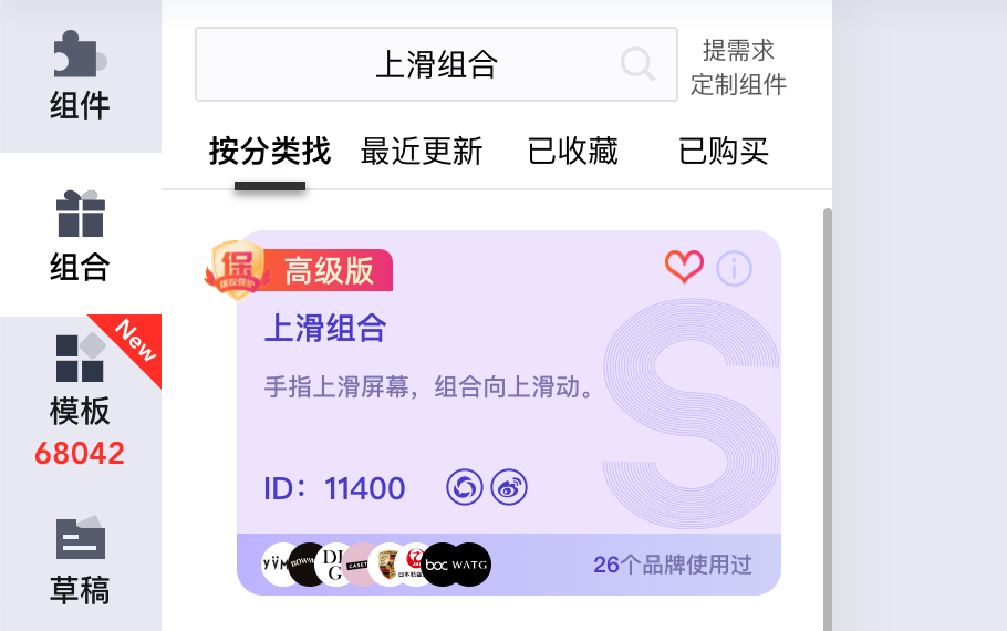 我们可以使用 iPaiban Pro 黑科技编辑器来实现,在编辑器组合中搜索关键词「上滑组合」就能看到所用的同款效果组合。