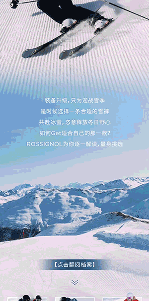 「点击切换选择」模拟翻阅档案,讲解这款雪裤的卓越保暖性,「左滑」展示更多细节,能够让产品展示的更为清楚。