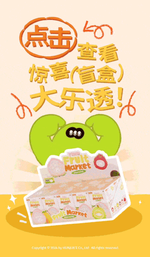 混合果汁 HUNJUICE 通过「点击切换后展开」的交互模式模拟打开萌果集市系列盲盒,吸引更多客户购入。