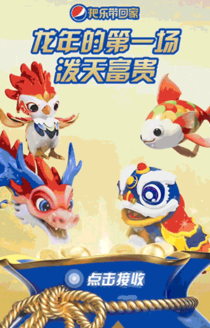 百事中国通过「点击播放GIF后伸缩式展开」的交互方式接收龙年富贵红包雨福利,点击领取优惠福利,吸引大家免费领取红包封面。