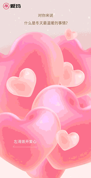 「层层滑开后点击展开」爱心背后的爱玛暖冬行动,「点击切换」查看爱玛的暖心之举,借此宣传爱玛服务以及优惠福利。