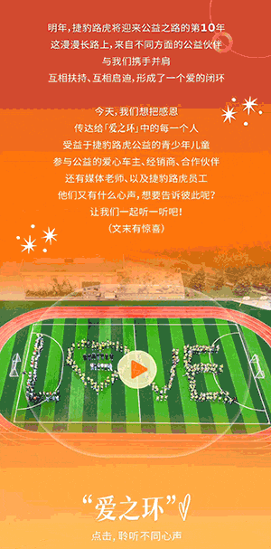「点击切换选择」查看爱之环相应的不同心声,借此庆祝捷豹路虎公益之路第10周年活动,吸引大家参与活动。