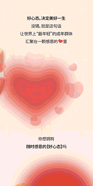 王小卤通过「点击展开」的交互方式展示随时感恩的好心态,「点击切换」查看大家感恩的方式,吸引大家互动和传播。