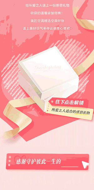 感恩节到来之际,美的空调通过多个平级「点击消失后展开」的交互,为大家介绍美的以旧换新活动,借此宣传美的空调。