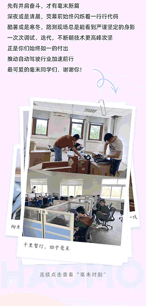 「连续点击飘落切换」查看“毫末时刻”和企业故事,借此庆祝毫末智行四周岁生日。