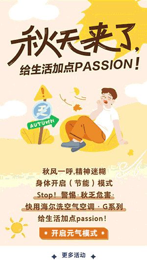 到了秋乏的时刻,海尔空调通过「点击展开」的交互模拟开启元气模式,引起大家的好奇心后,再引导大家「点击切换」查看海尔空调的各个使用场景,借此吸引更多客户购买海尔洗空气空调·G系列。