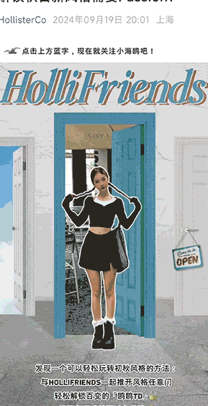「前景左滑」查看不同模特穿着HollisterCo品牌系列服装的照片,带大家轻松玩转初秋风格。