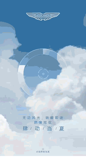 阿斯顿马丁通过引导大家「点击展开」模拟解锁壁纸,依次「点击弹出」带大家查看夏日的激情时刻,借此介绍阿斯顿马丁中国汽车的各个细节与创意。