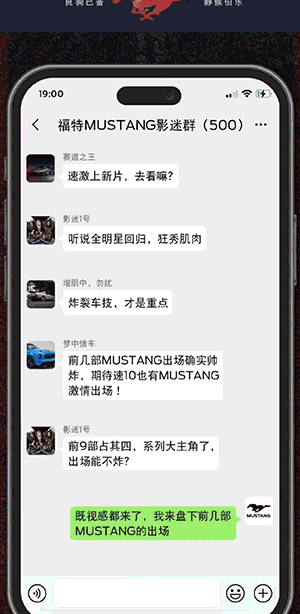 福特通过「自动层层抖动式展开」的交互模拟加载出影迷群中的聊天记录,最后「点击展开」盘点剧中出现的汽车详情介绍,「左滑」展示各个细节与创意,像电影一样宣传产品。