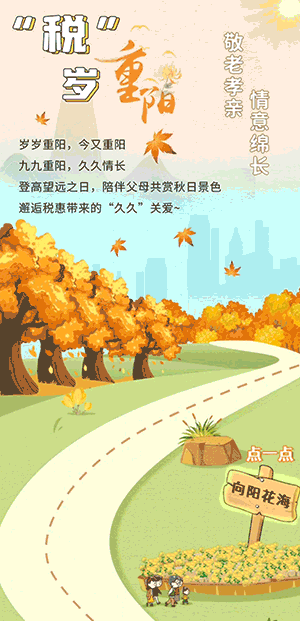 福州税务通过「点击飘落后展开」的交互方式介绍为老年人推出的相关优惠政策,借此吸引广大读者在重阳节之际了解更多关于老人的税惠支持。