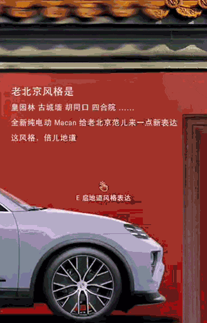 「点击切换序列帧后展开」保时捷限时体验空间,「自动轮播」展示空间照片,吸引更多客户来北京线下打卡。
