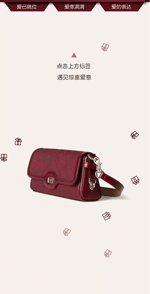 七夕将至,GUCCI通过引导大家「点击切换选择」查看不同标签相应的产品推荐,借此宣传更多七夕心动甄选礼物。