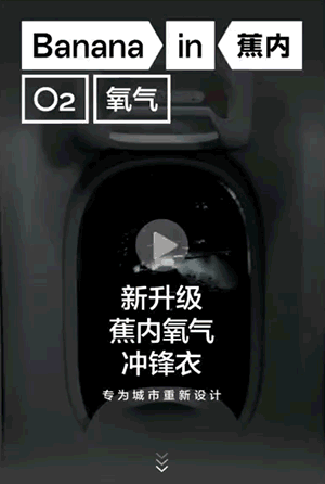 Bananain蕉内通过「上滑」的方式介绍Bananain蕉内联名款冲锋衣,借此宣传Bananain蕉内品牌,吸引大家购买。
