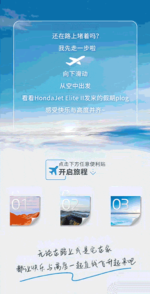 「点击弹性展开」任意便利贴开启新的旅程,借此宣传本田中国汽车,吸引大家前往试驾。