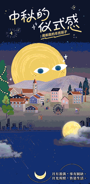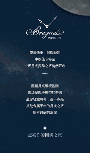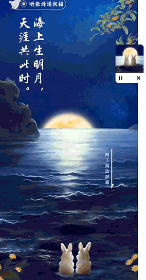 「穿透式下滑」模拟滑动月亮,查阅中秋相关古诗的同时可以「点击播放」祝福语音,借此祝大家中秋节快乐。