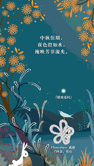 「连续点击切换」模拟跟随小兔兔观看VanCleefArpels梵克雅宝各种手饰,吸引更多客户购买中秋好礼并送上中秋祝福。