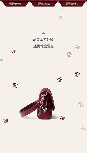「点击抽屉式切换」查看GUCCI各个款式包包,借此吸引读者前往商城挑选七夕心动包包,宣传GUCCI品牌。