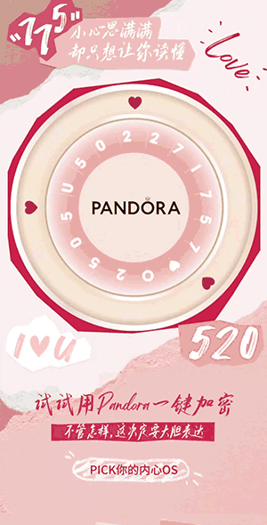「点击展开,点击返回」模拟PICK你的内心OS,「左滑」介绍Pandora潘多拉珠宝,吸引更多客户购买。