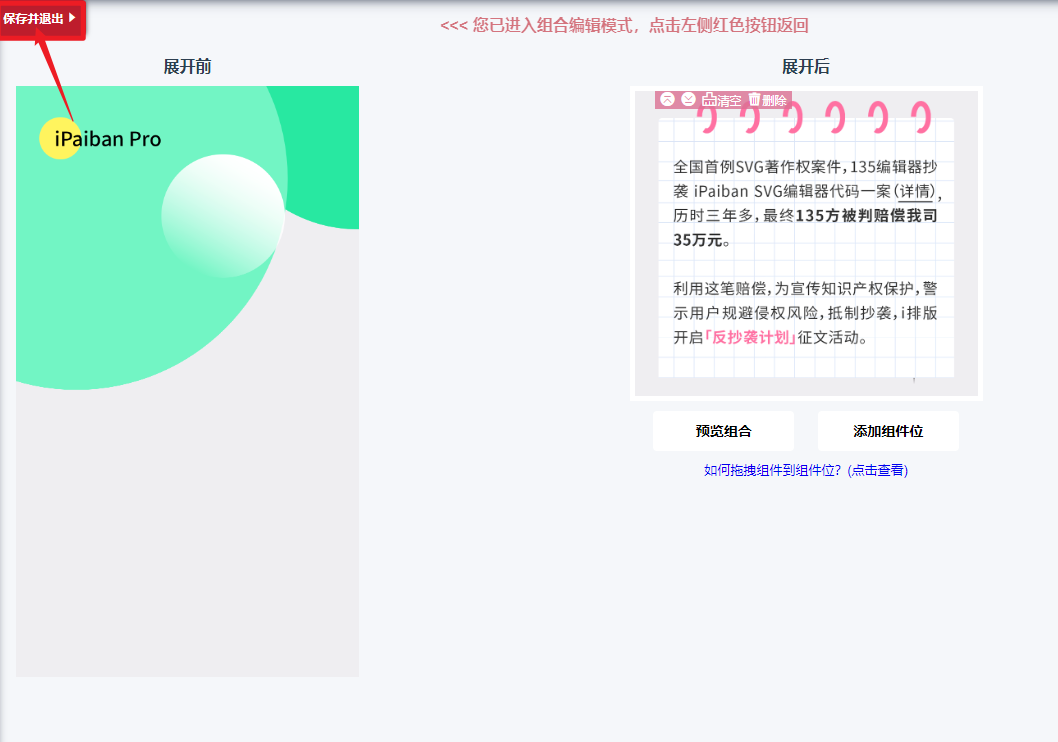 在组合编辑模式中,我们需要设置展开前和展开后的内容。