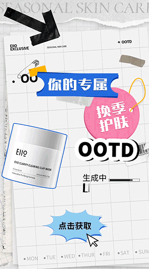 「点击展开」换季推荐护肤品的介绍,多个平级「点击展开」查看对不同肤质的女孩的护肤品推荐,借此宣传EIIO奕沃,吸引读者购买。