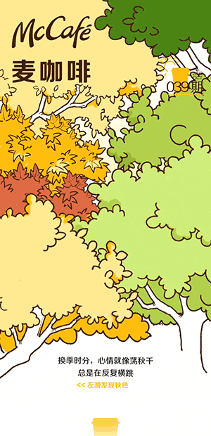 「层层滑开」到「乱穿衣」也很美的季节,借此宣传本周奶铁福利活动,借此宣传McCafe麦咖啡。