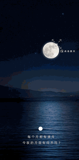 大众进口汽车通过「连续点击放大切换」的SVG交互展示层层放大的月亮切换出大众进口汽车,借此宣传大众进口汽车,并祝大家中秋节快乐。