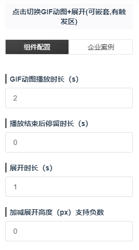 每一个展开组合至少可以调整4个参数:GIF动图播放时长、GIF播放结束后停留时长、展开时长和展开高度,点击右侧红色小三角可以看到。