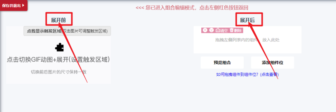 在组合编辑模式中,我们需要设置展开前和展开后的内容。