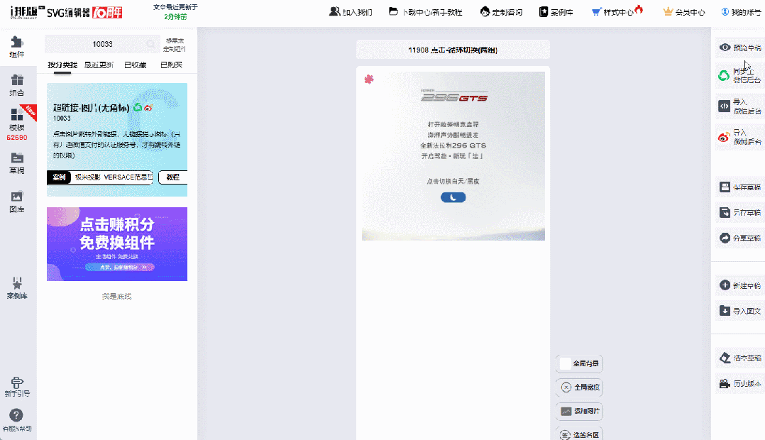 以上案例中全文的循环切换可使用 iPaiban Pro 黑科技编辑器里的「点击-循环切换(两组)」组合(编号:11908)制作。支持自定义点击循环切换的次数。