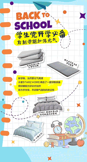 「点击抽屉式切换」查看新学期水星STARZ HOME为大家精选的一套好眠装备,「自动轮播」展示新床品,吸引大家前往线下门店购买。