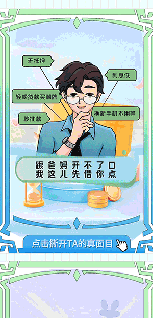 中国银联通过「点击翻转切换图片后展开」模拟撕开骗子的真面目,借此普及金融知识和宣传中国银联。