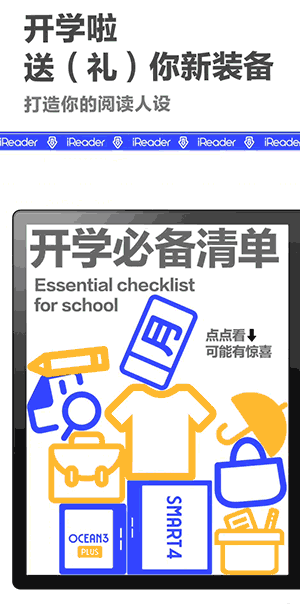 「点击弹窗」查看开学必备清单,借此宣传掌阅iReader产品,吸引更多客户购买。
