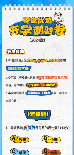 《会员日&开学季 | 《2024零食优选开学测验卷》》
