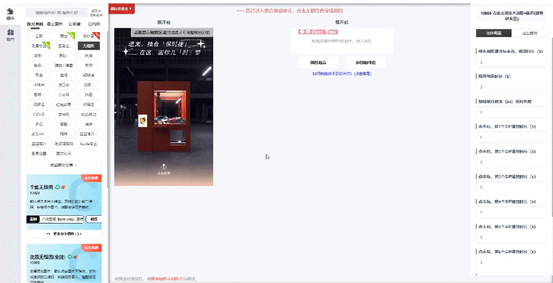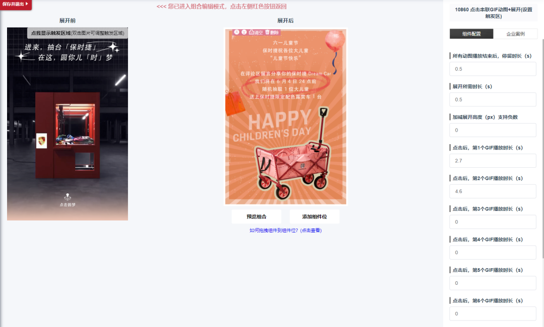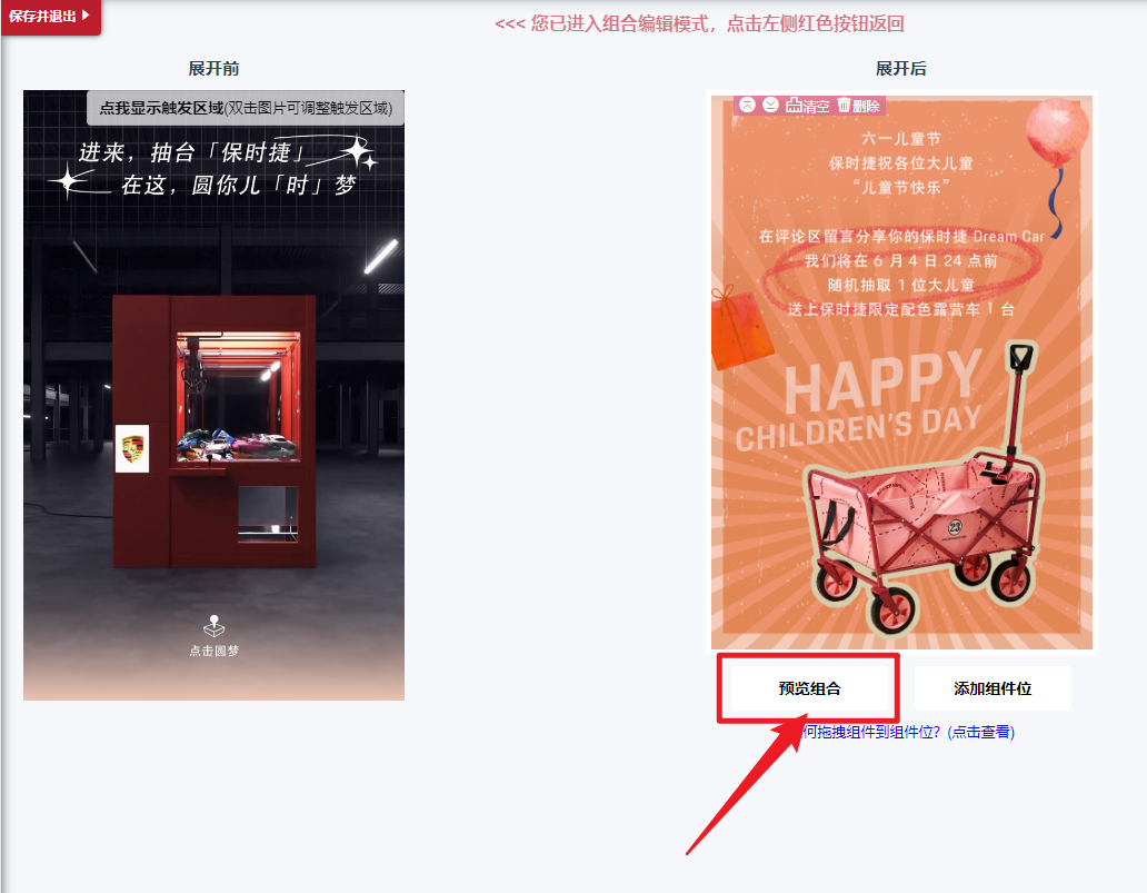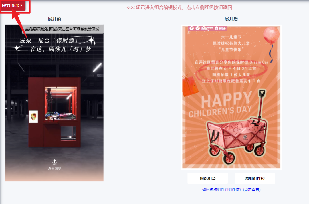 内容编辑完毕后,点击左上角「保存并退出」退出组合编辑模式回到编辑器主页面。