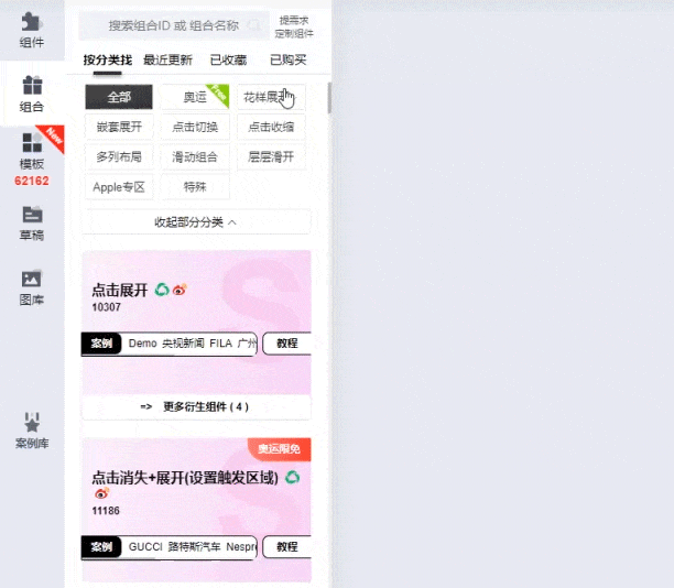 这些效果的制作方法差不多,以本文「点击串联GIF动图+展开」的效果为例,一起看下制作教程吧。