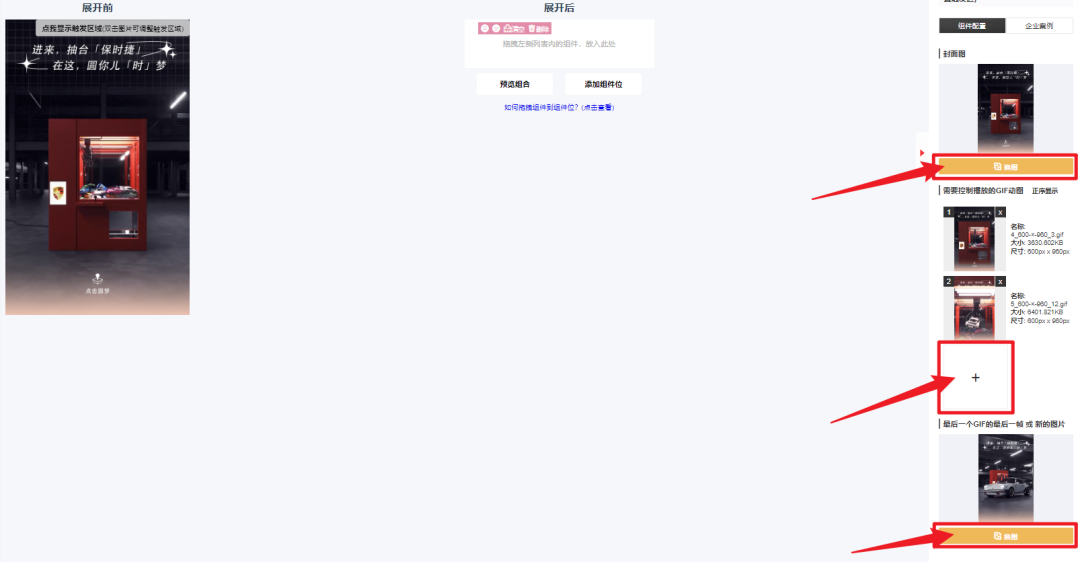 注意!想要实现完美的串联GIF动图效果,封面图、需要控制播放的GIF动图和最后一个GIF的最后一帧或新的图片最好尺寸一致。