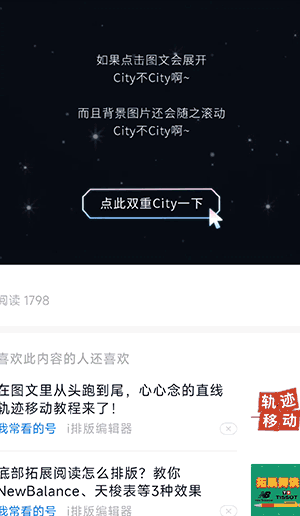 以热门话题「city不city」为引,「点击展开伴随背景移动」查看i排版编辑器7月会员日活动的介绍,用超多福利吸引客户购买。