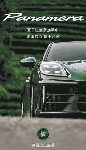 「点击消失后从头展开」全新Panamera汽车的介绍,「点击切换」模拟绘制“绿境”介绍保时捷新款汽车,吸引读者前往试驾。