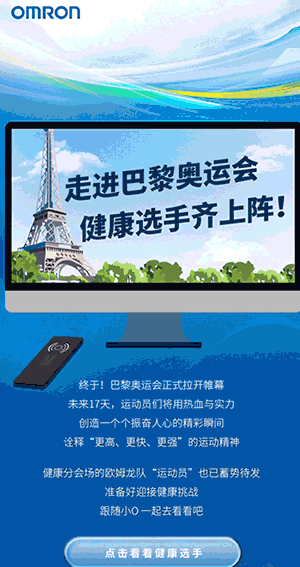 「点击展开」奥运会中不同的比赛赛事,「点击切换」模拟进入相应的健康分会场,依次宣传欧姆龙健康产品,吸引更多客户购买。