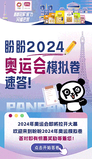 盼盼通过「点击答题」的交互推出2024奥运会模拟试卷,其中穿插企业信息宣传,吸引更多客户互动领取盼盼奥运助威礼盒。