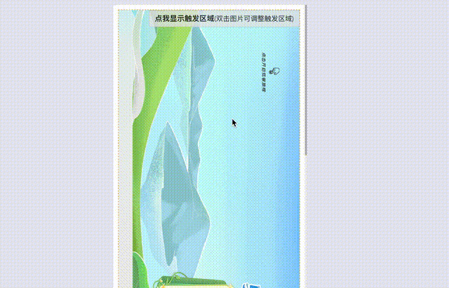 编辑区双击背景图,在弹出的窗口中,通过调整红色色块的位置和大小调整点击触发的区域。