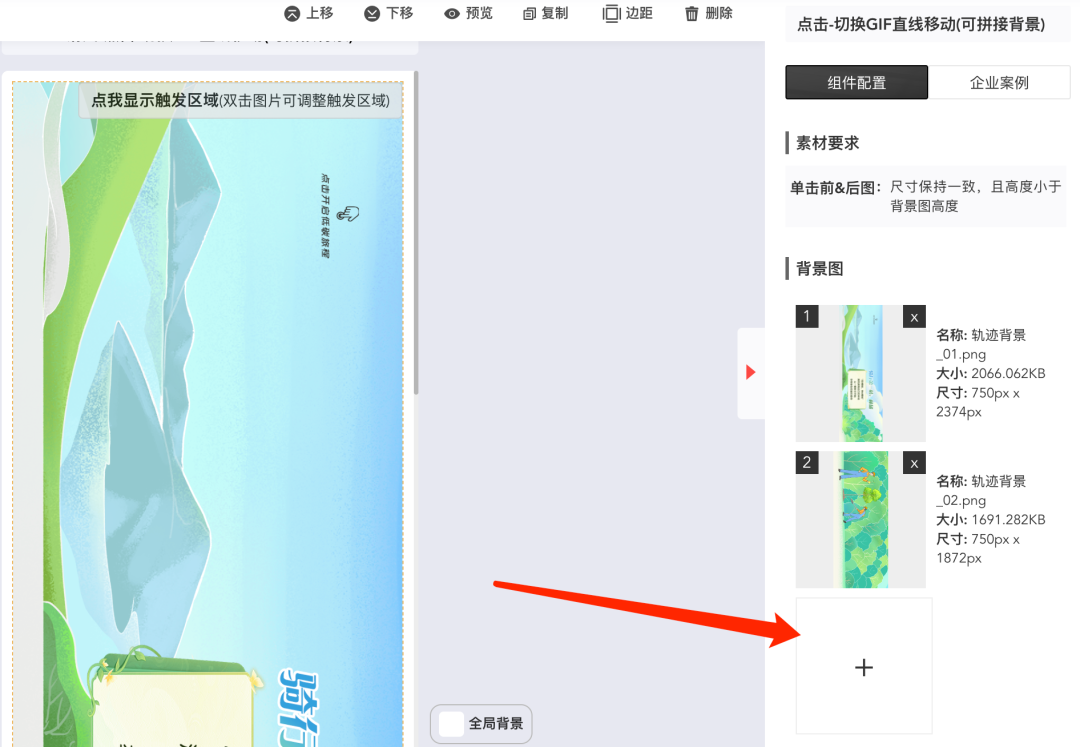 要注意的是,两张移动图的宽度需与背景图宽度保持一致,且高度小于背景图。