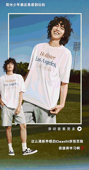 通过「前景视差左滑」介绍Hollister系列服装,借此吸引大家前往旗舰店购买。